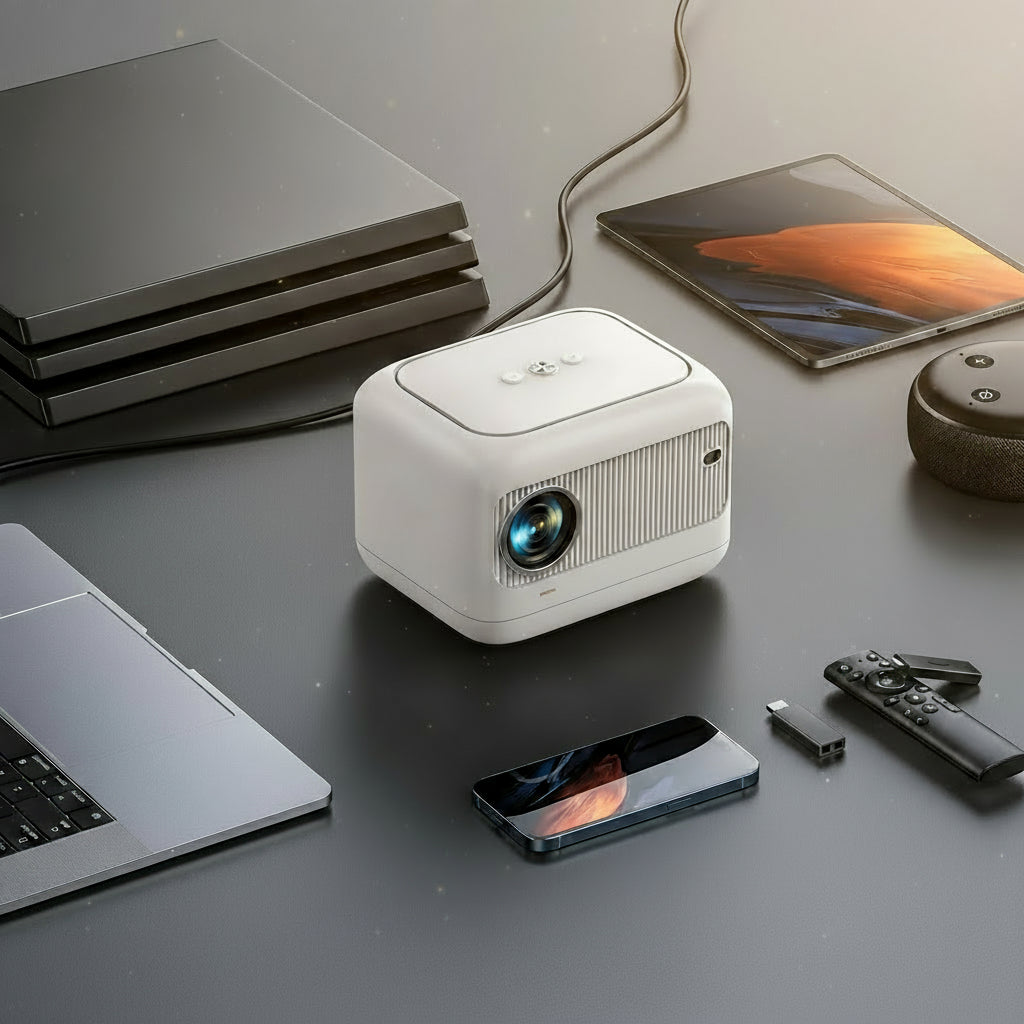 Le vidéoprojecteur mini pro permet de se connecter facilement grâce au WiFi 5G ultra-rapide et au Bluetooth 5.2. Profitez d’une connexion instantanée, sans câble, et diffusez vos films, séries ou jeux avec un son 360° puissant et immersif. Chaque moment devient fluide, vivant et sans décalage.
